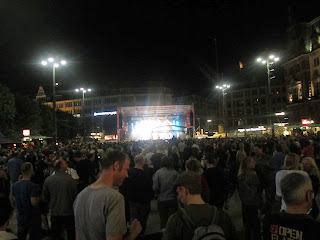 Afterwards, Aileen and I met up with everyone at Rathaus Square for lunch from some food stands. I had a German sausage and dark chocolate-covered strawberries on a stick and it was DELICIOUS. It was also just a really cool and lively area to be in. The government building was right there, but so was a stage for a music festival, a lake, and lots of shopping (which meant we had to stop at H&M).